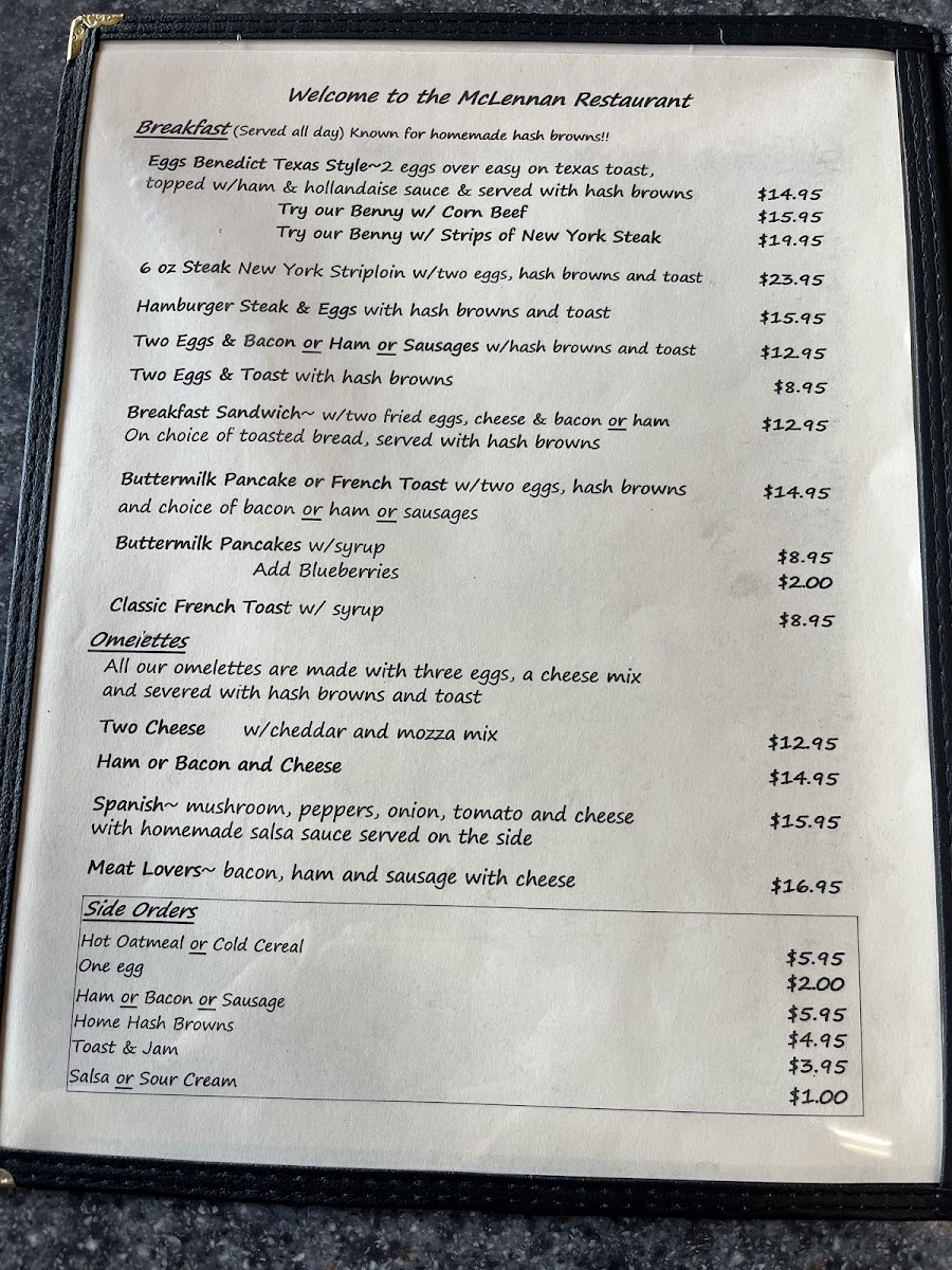 Welcome to McLennan Car/Truck Stop, located at 3205 McLennan Rd, Valemount, BC! This charming eatery stands out with its delicious homestyle cooking and cozy, welcoming atmosphere. The menu features an array of favorites that cater to all tastes, highlighting options like their famous homemade hash browns, mouthwatering chicken burgers, and delectable Benedicts.